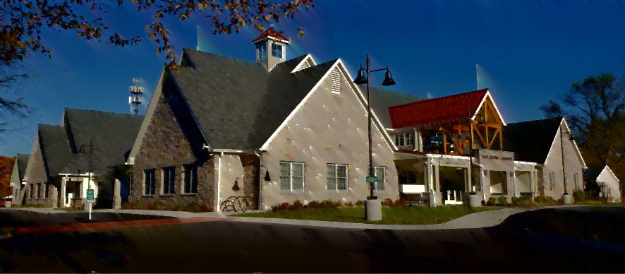 This project was able to break down the scale of a rather large program and create an inviting complex structure. The displacement of public/ semi-public or private program are clearly organized with adjacencies for visitors, staff and service. The relocated mural feature is a worthwhile informational and conversational element. The stone facades at the public entry anchor the building and allude to a more historic structure that was followed by additions. The articulated timber framing at the entrance attracts one’s eye, yet one wonders if it could have continued down and visually opened up the entrance.