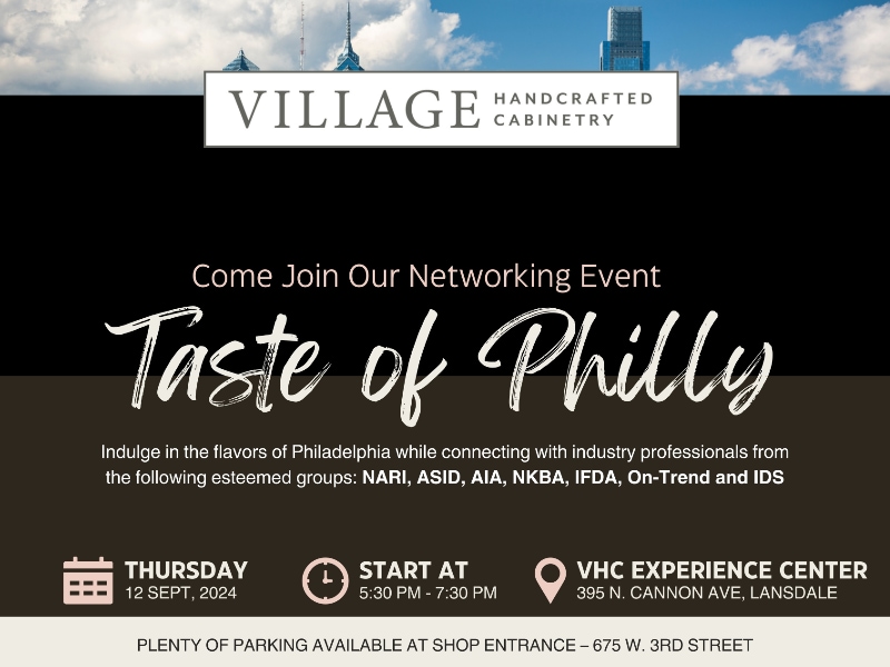 Please join us and connect with professionals from AIA, NARI, ASID, NKBA, IFDA, and other organizations while enjoying the tastes and flavors of Philly!